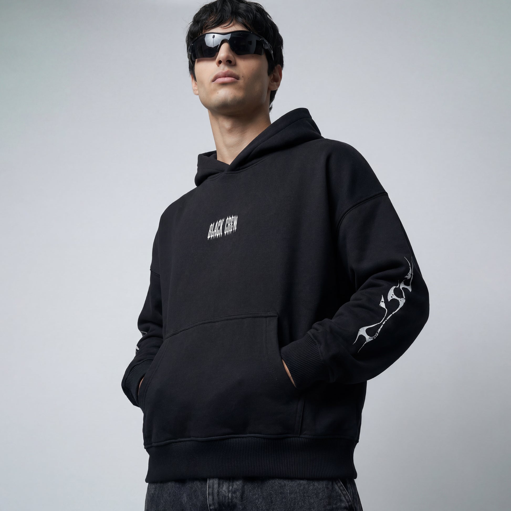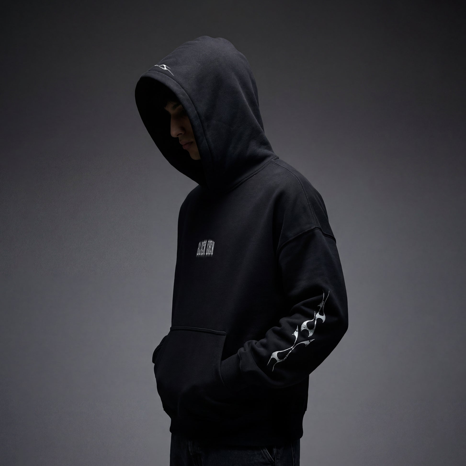 Both sleeves carry flame-inspired graphic elements. Constructed on our signature oversized relaxed fit, and a double lined well-constructed hood.
