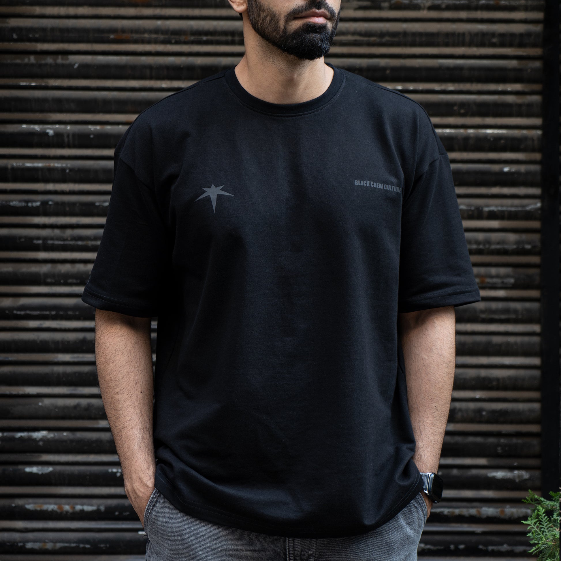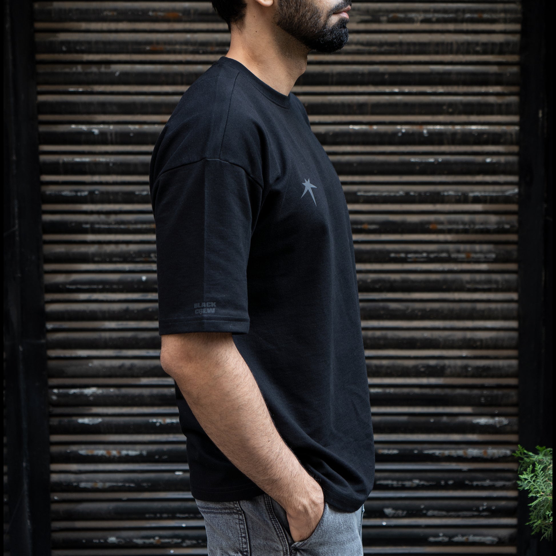 Tonal Black Reflective prints on the front, featuring minimal branding and abstract detailing.