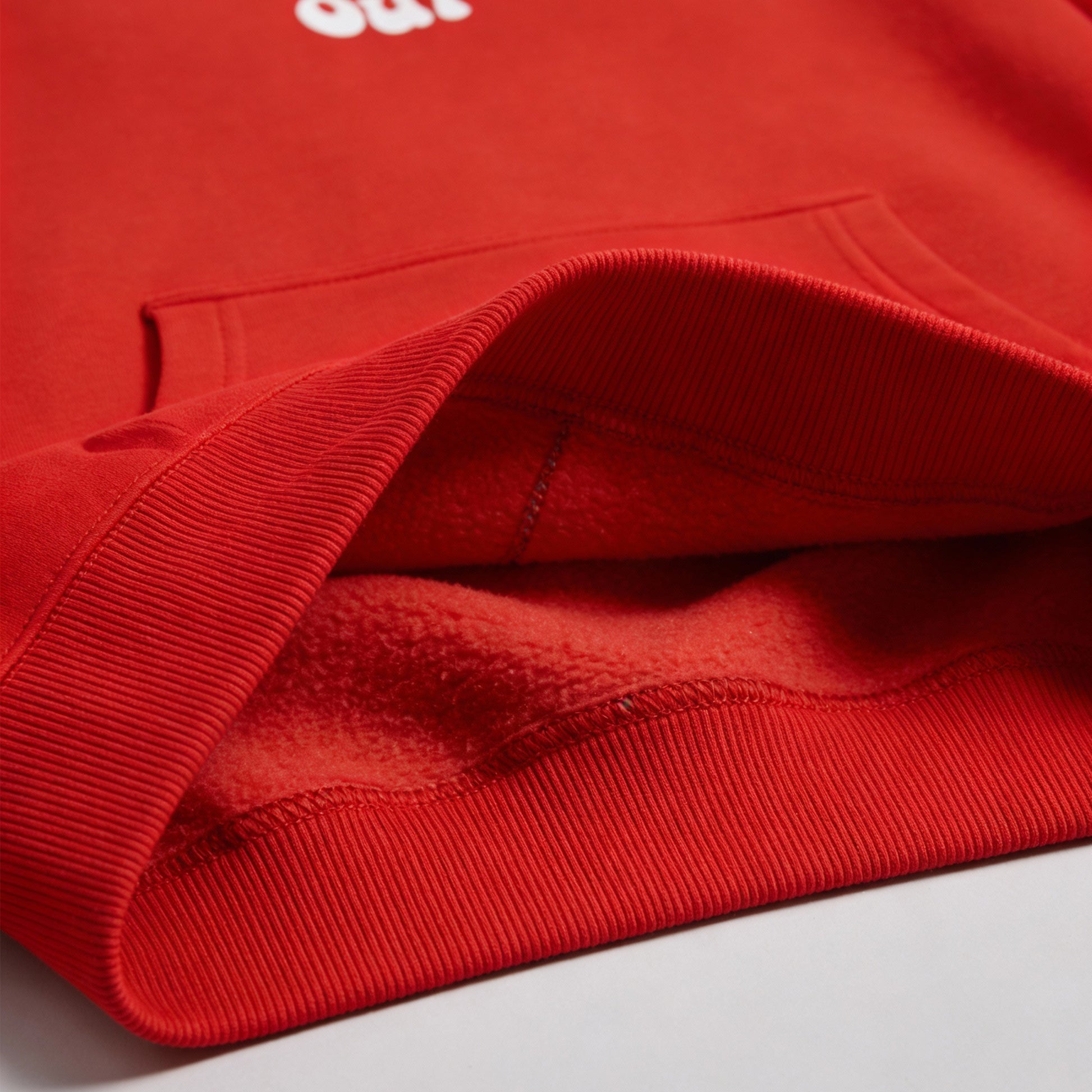 Our new Core Red hoodie, featuring bold typography styled Reflective prints.