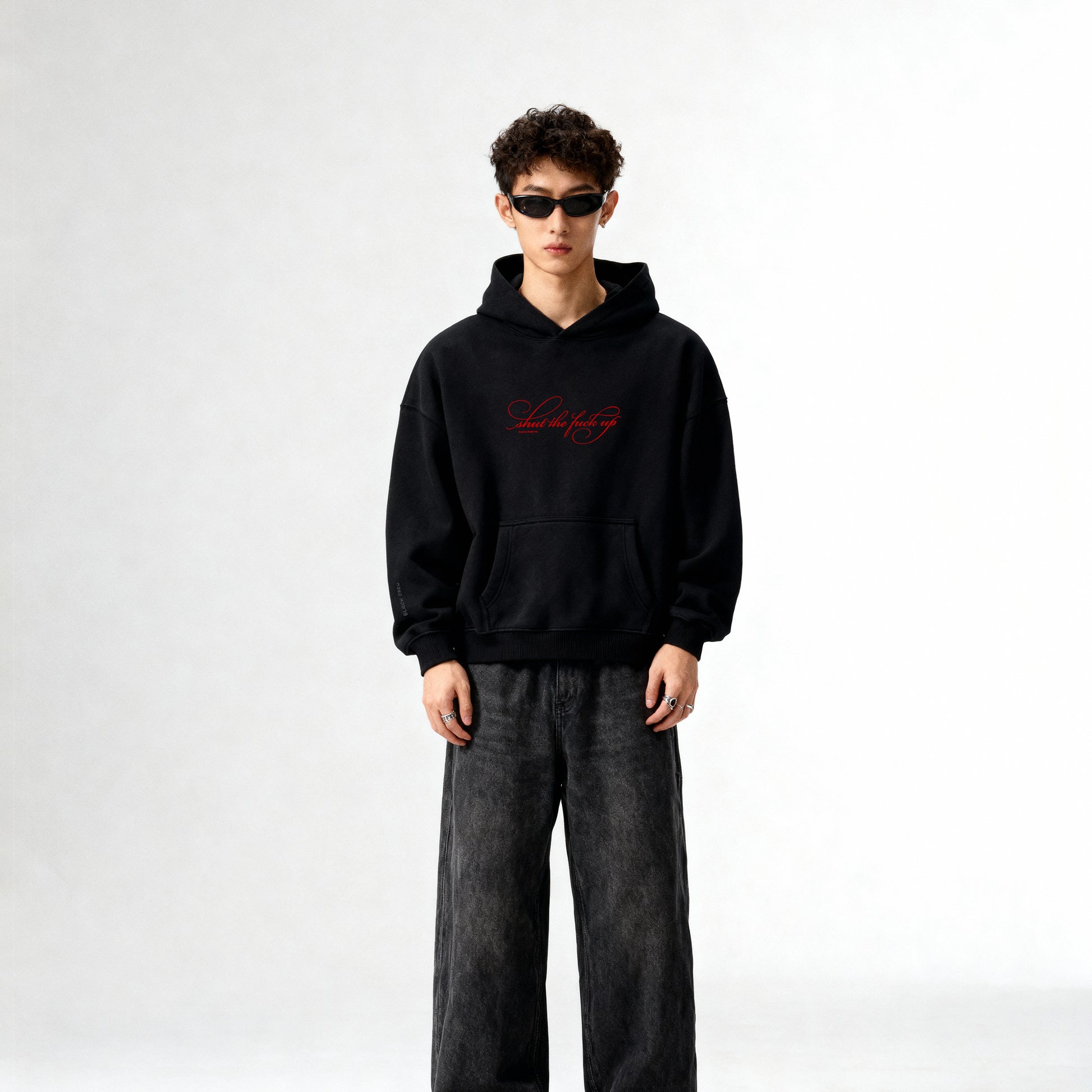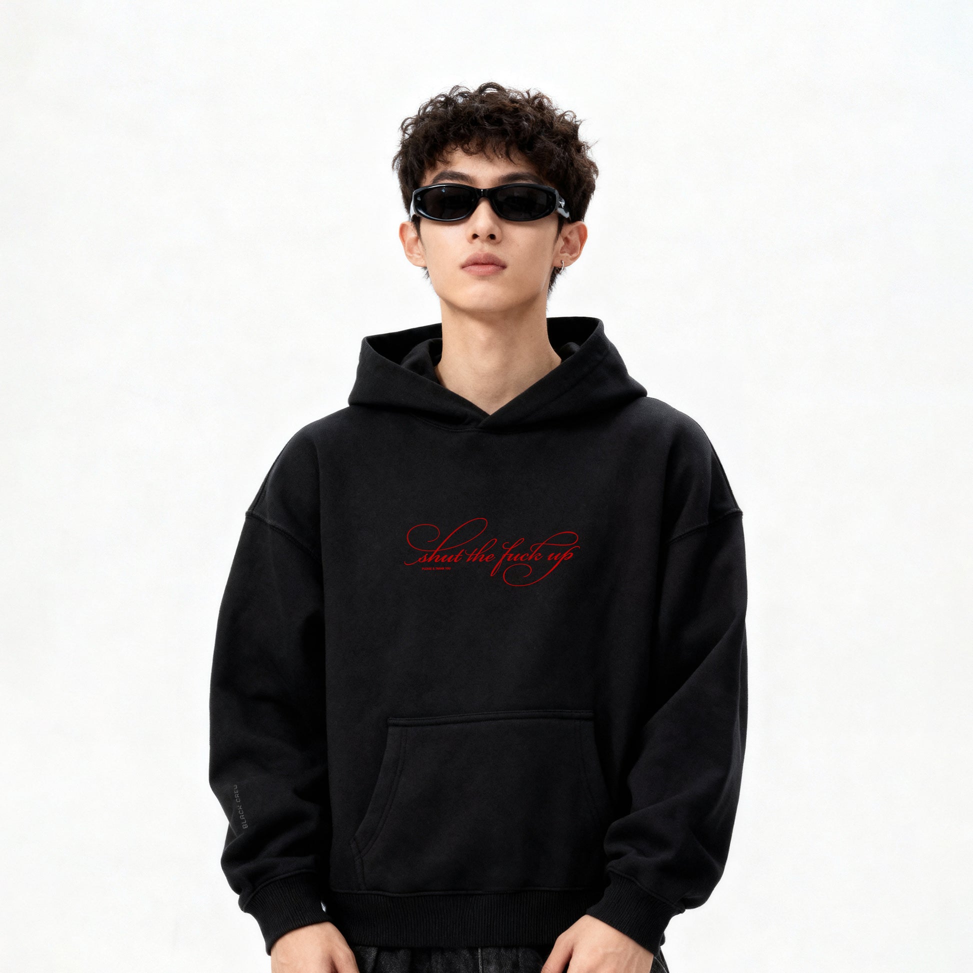 Premium Hoodie featuring a bold statement print across the front, in a high-impact typographic layout.
